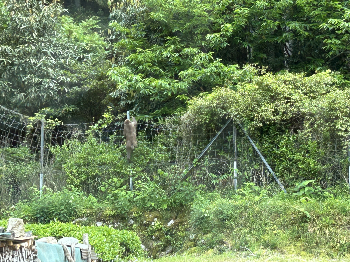 ふるさと屋獣害パトロール。朝柄、五箇谷神社西の山に数頭目視しました。電波は受信できませんが、小ザルもいたことから、群れ(おそらく勢和B群)がいると思われます。