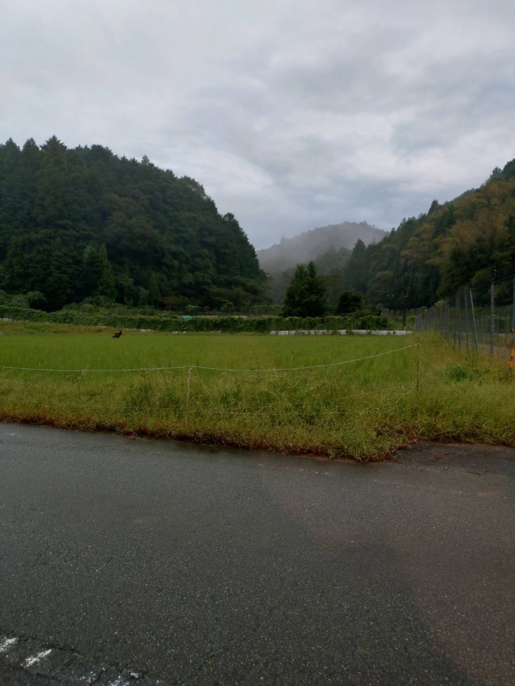 朝、道に立っていて、しばらくしたら田のほうへ逃げて行った。